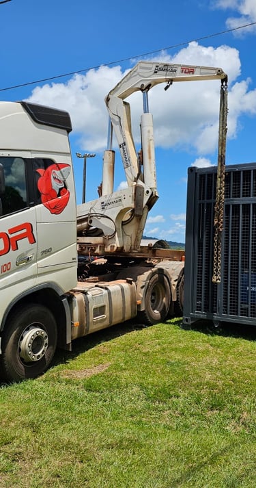 les moyens nécessaires (porte-container, camion benne, camion grue...)