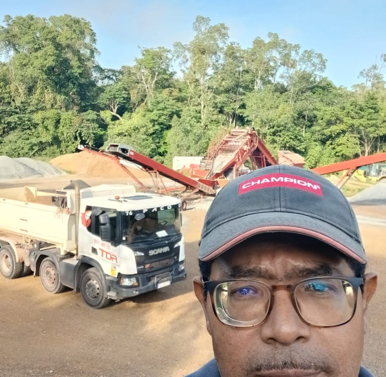 Bio: Jamil est un jeune chauffeur plein d'entrain et à la motivation débordante. Il passe facilement des véhicules poids lourds aux semi-remorques sans aucune hésitation. Jamil parcourt tout le territoire guyanais de Saint Georges de l'Oyapock à Apatou.